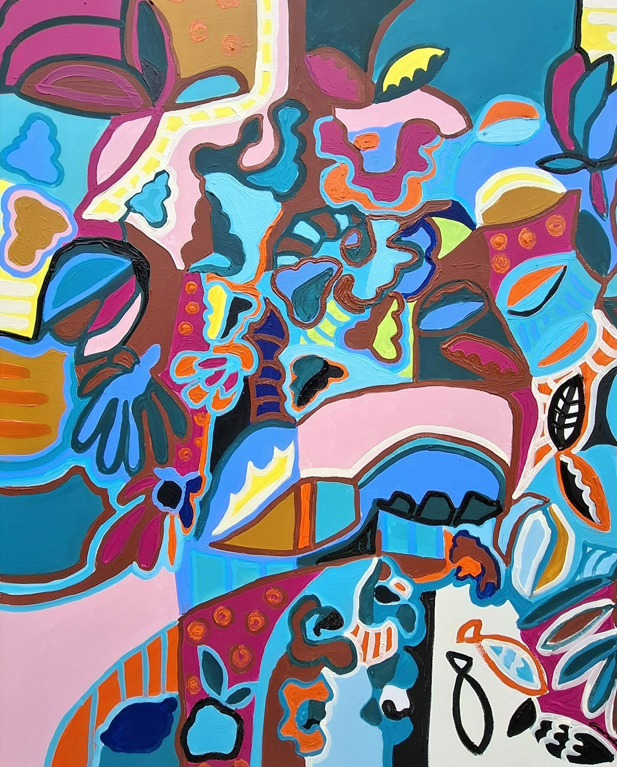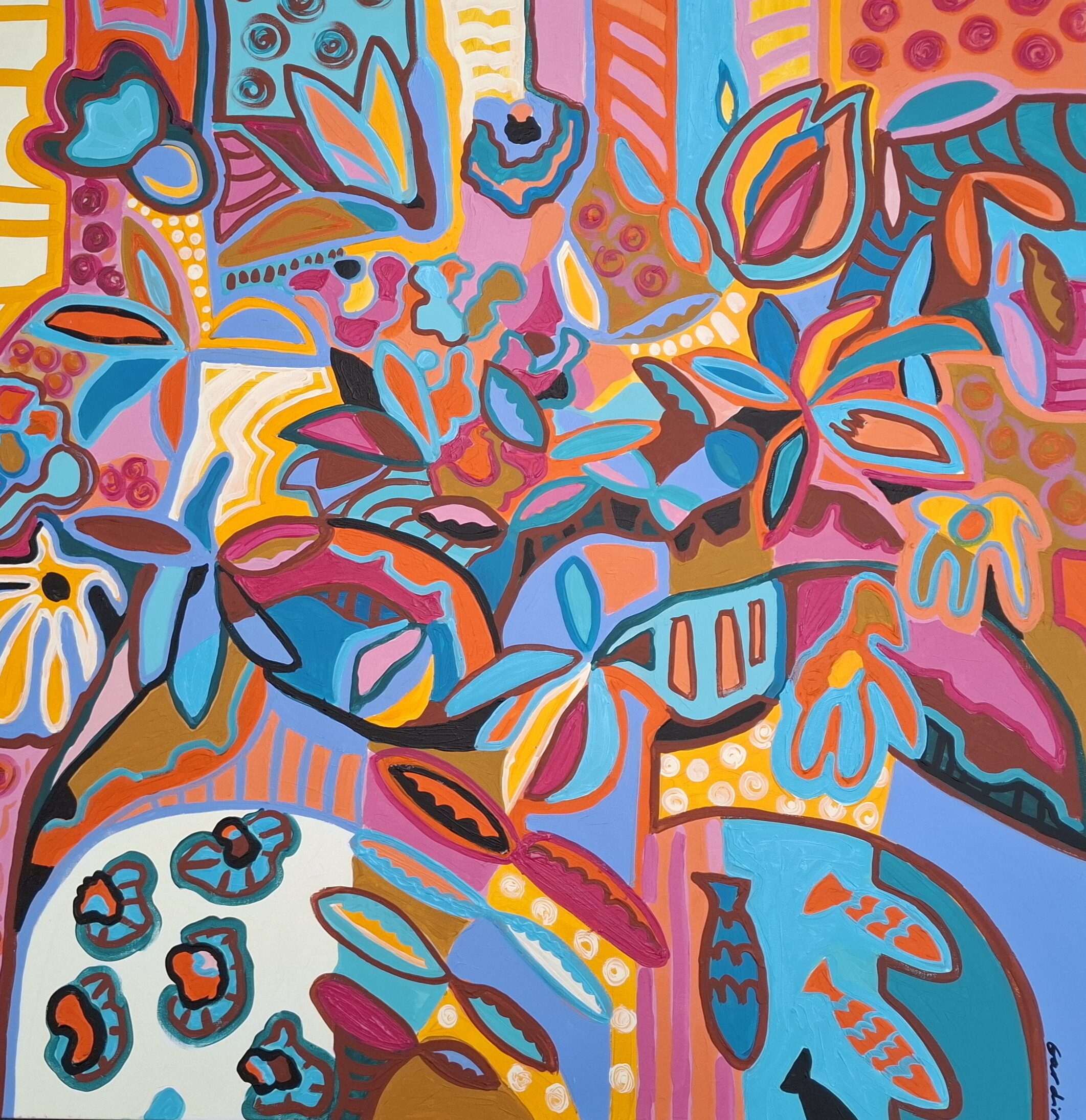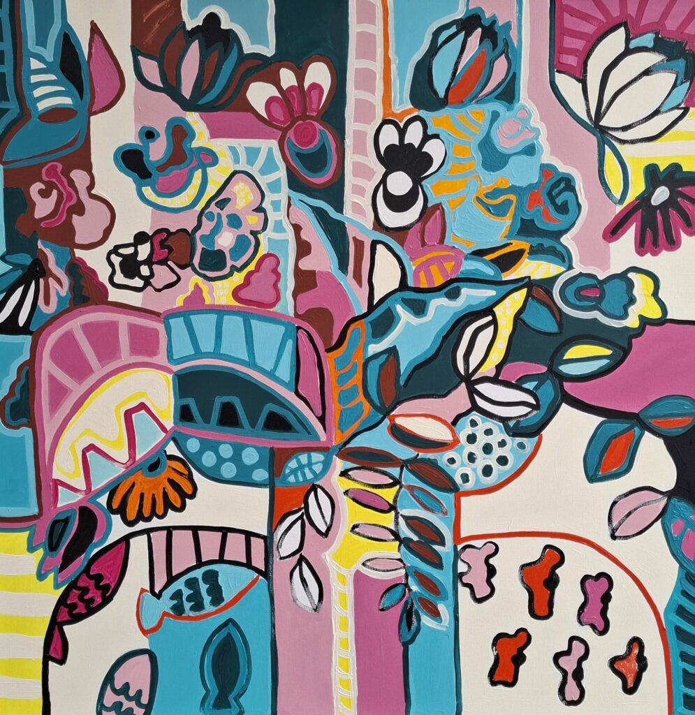 Voici la toute première collection 2026 ! Entre figuration et abstraction, les éléments, fleurs, feuillages, vase, motifs géométriques s’entremêlent joyeusement dans des harmonies de couleurs vibrantes ! Chaque composition est unique, réalisée de manière improvisée et imaginaire.
