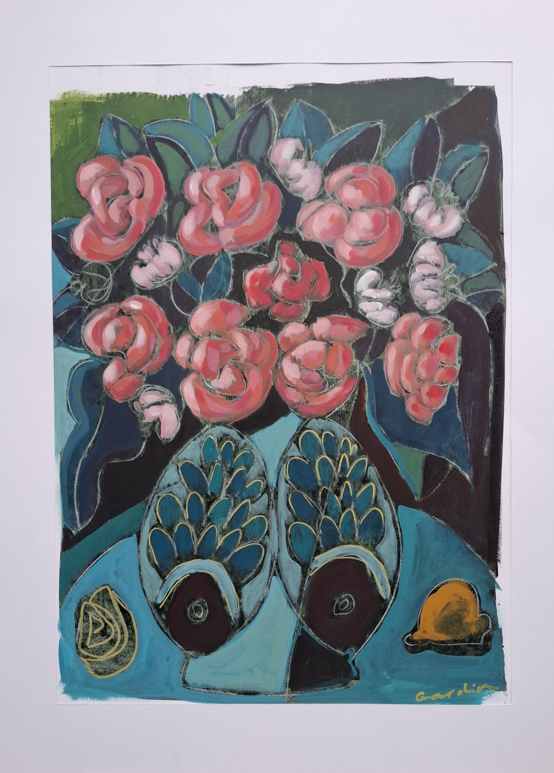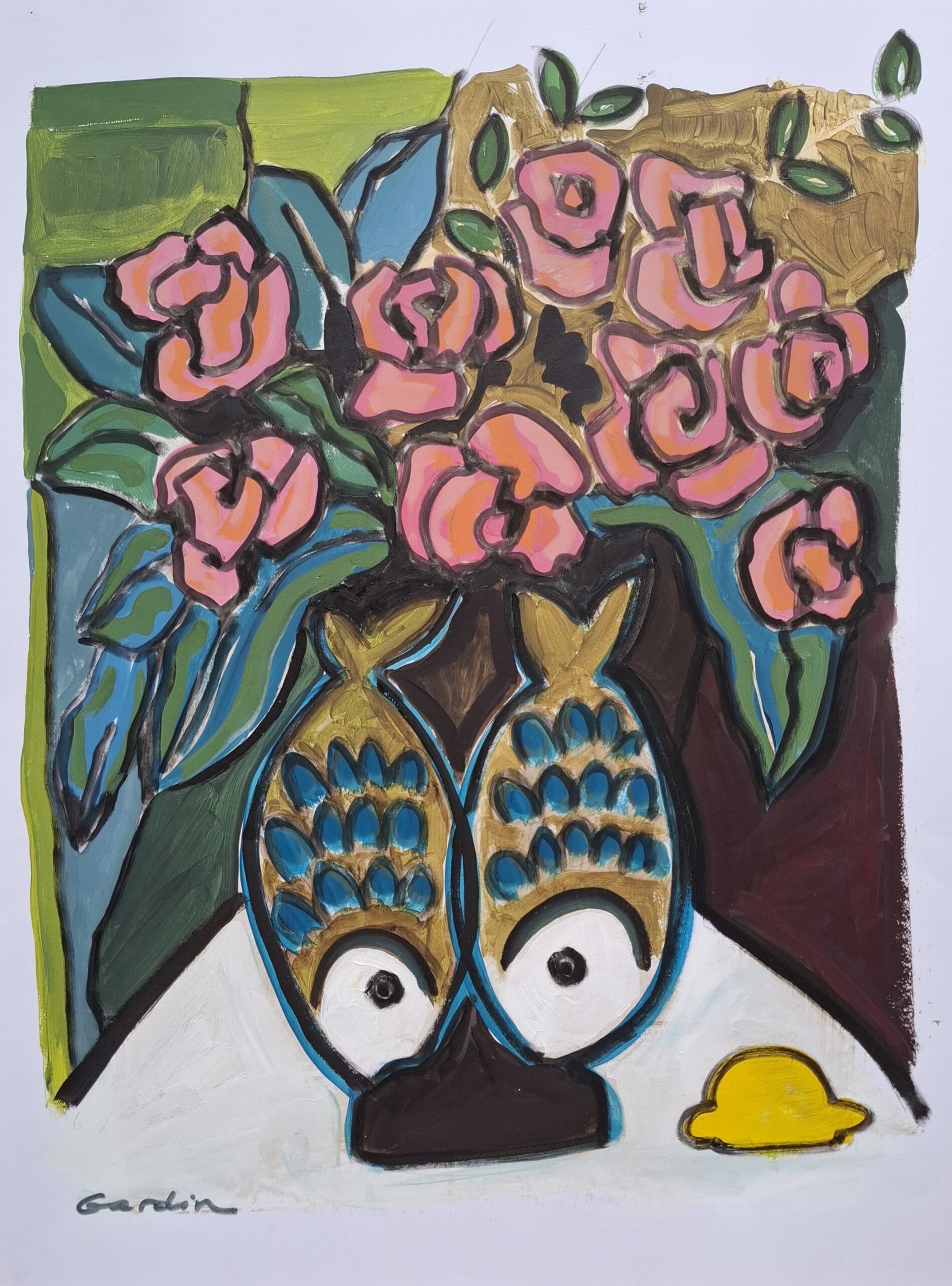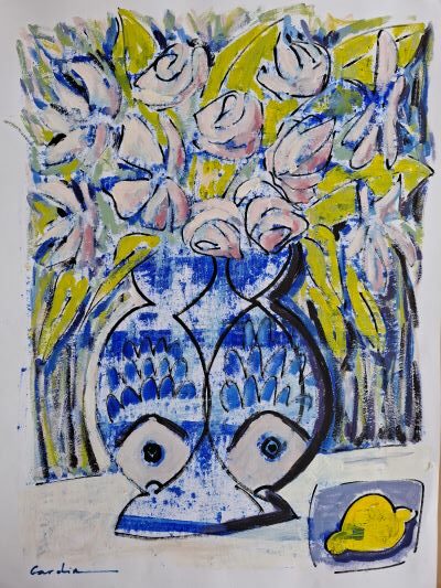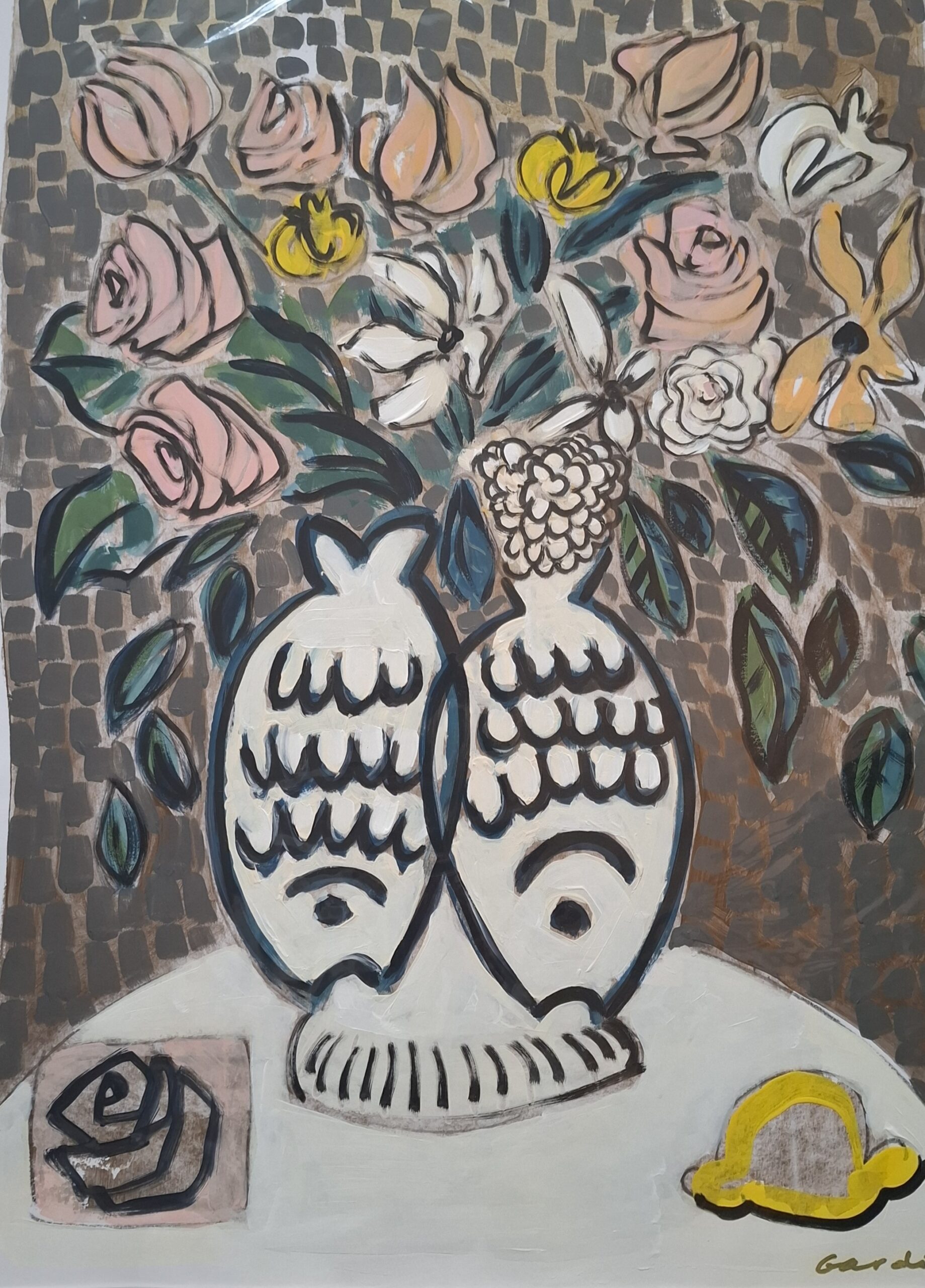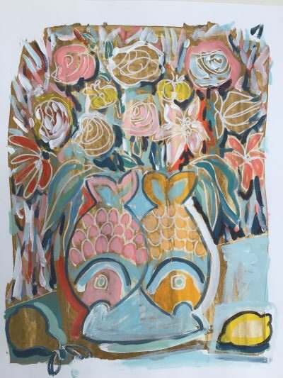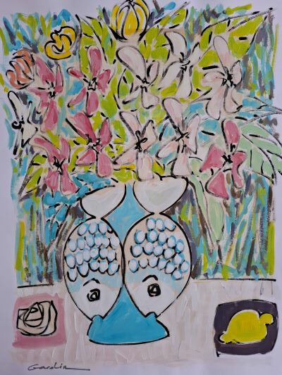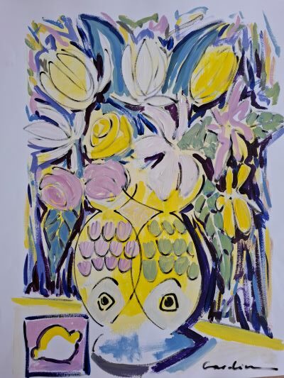 Les poissons et le citron évoquent la méditerranee et le soleil du sud.